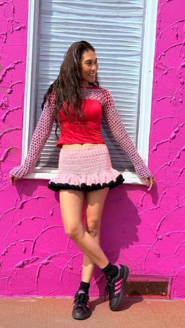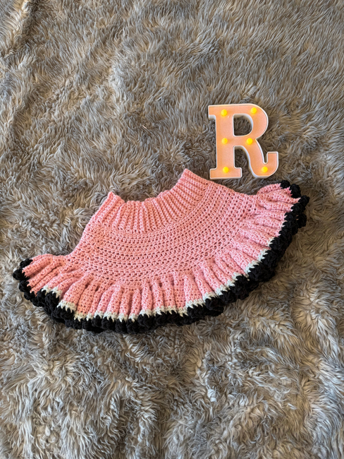 Pink Crochet by Riza designed the The "Watermelon Sugar Ruffle" Skirt pattern. Find more of their patterns on their Ribblr shop page.