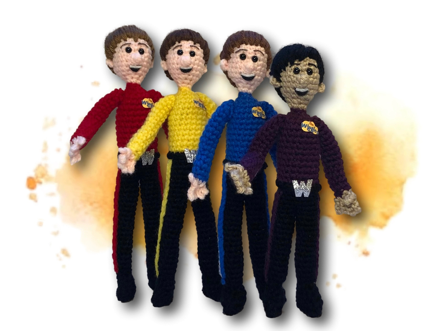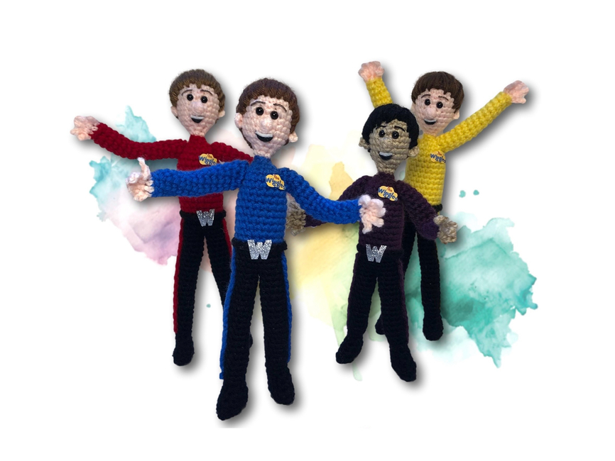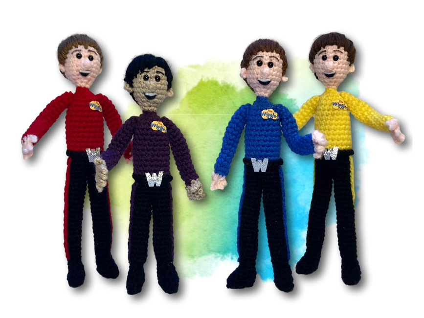 Crochet your way into a colorful musical adventure with this lively set, worked in worsted weight yarns, with wired limbs for maximum musical posability! This pattern is for all four dolls, made the same except for differences in yarn colours. It includes more than 30 colour photos and one video link to help you along the way! It's time to crochet and wiggle!