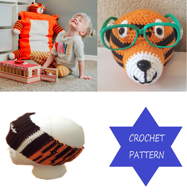 Great bundle of crochet patterns for any tiger lover! Included in this bundle are patterns for a tiger pillow sham which is adjustable for various size bed pillows, Bengal tiger earwarmer, and tiger eyeglass holder. All patterns use worsted weight yarn.