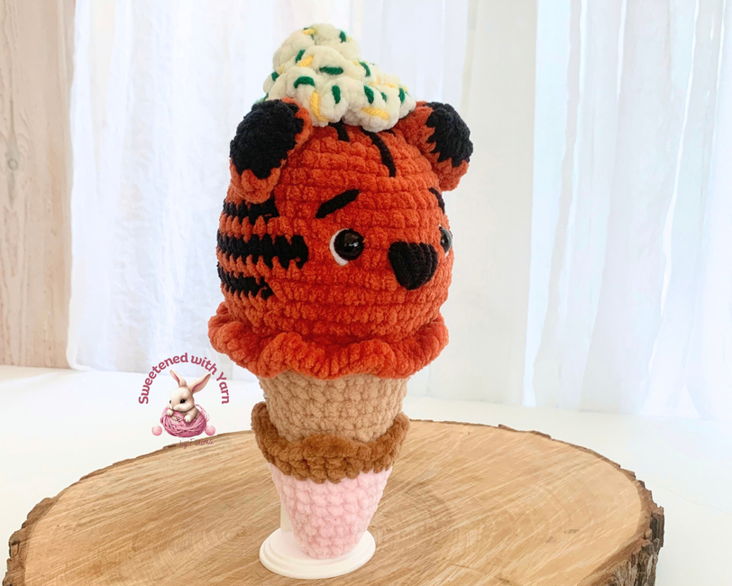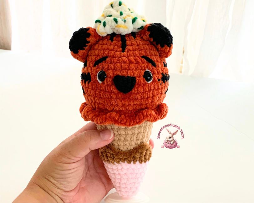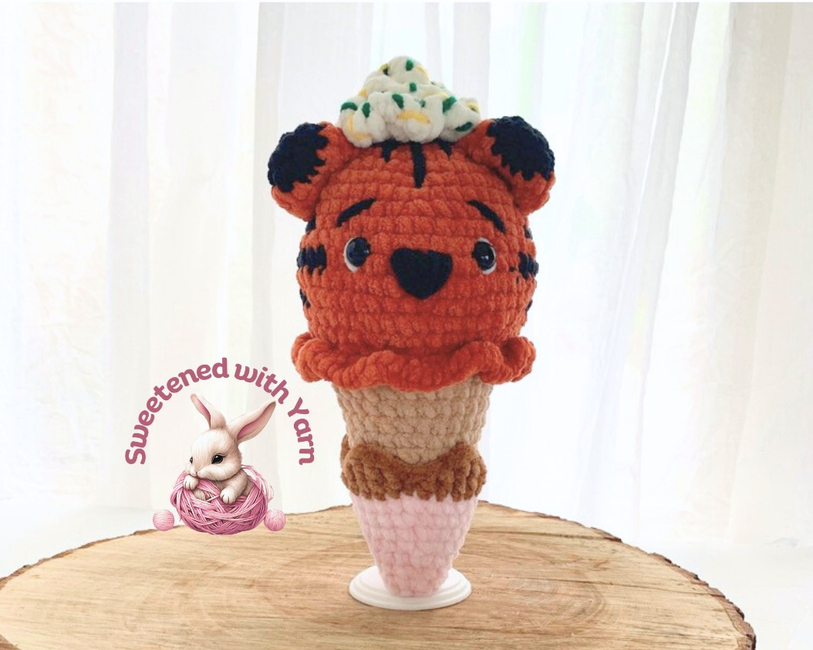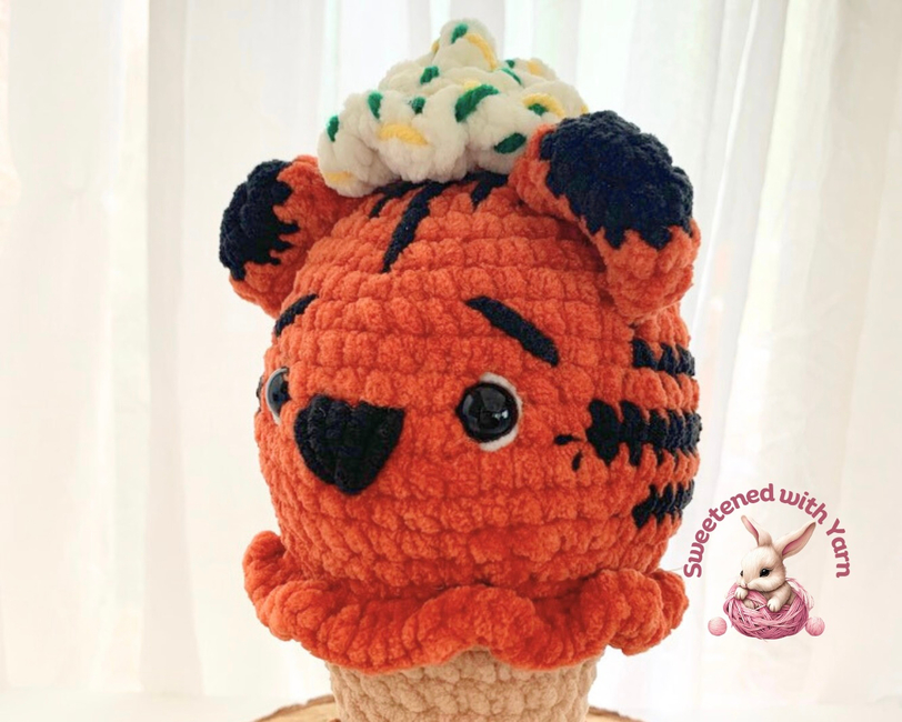 This adorable tiger-shaped ice cream is a truly delightful treat. The cones are available in a variety of animals, with more already in the works. Each crochet is a quick, whimsical journey, perfect for market makes or a relaxing project at home.