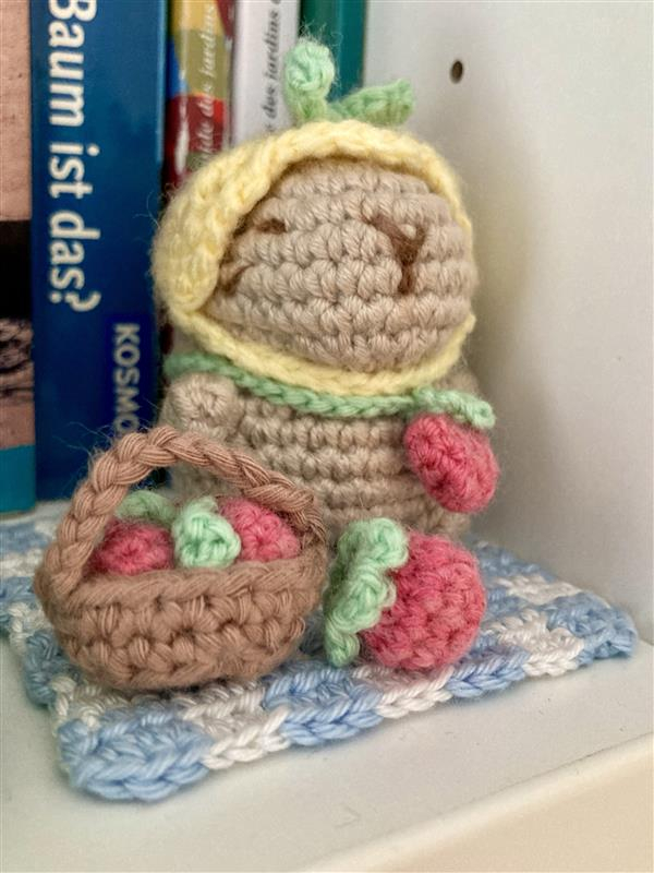 The Tiny basket filled with strawberries pattern makes a Amigurumi. It is a Intermediate Crochet pattern.