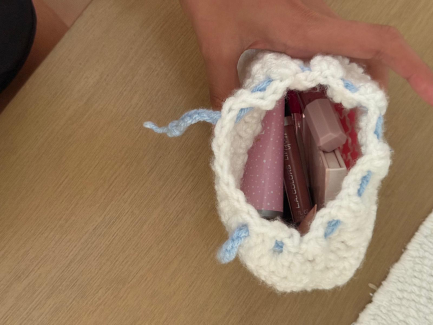 This is a super-easy drawstring bag. You can put your makeup, crochet supplies, and medications. You can also bring it on vacation to store your things!!! Have fun!!!!