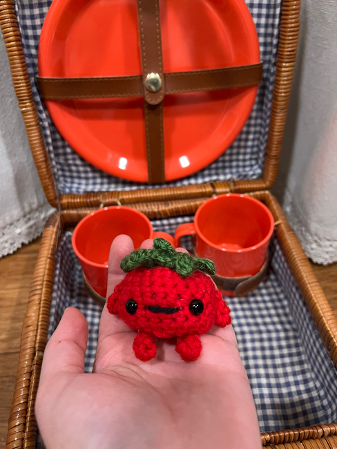 This is a small tomato guy and the cutest vegetable so far (in my opinion). If you like his style, go look at my other picnic pals, because it's very likely that you'll enjoy them too.