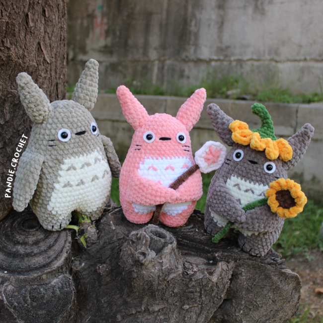 Enjoy the bundle of 3-1 Totoro!! This pattern will take you step by step to make a super cute Totoro, SUnflower Totoro and Sakura Totoro. Share your final products on insta and tag me: @pandie.crochet