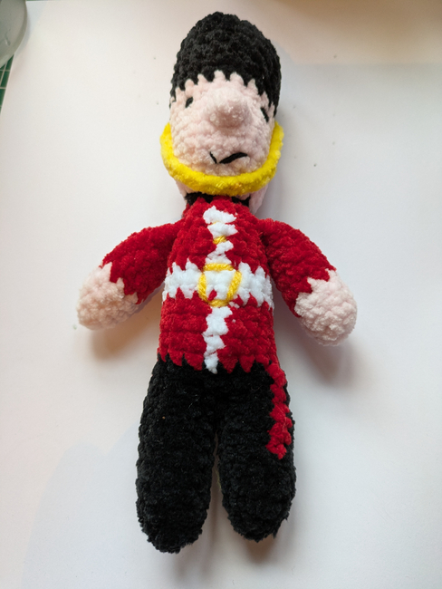 The Toy soldier (low sew) pattern makes a Amigurumi. It is a Intermediate Crochet pattern.