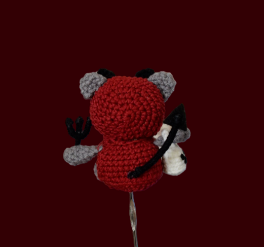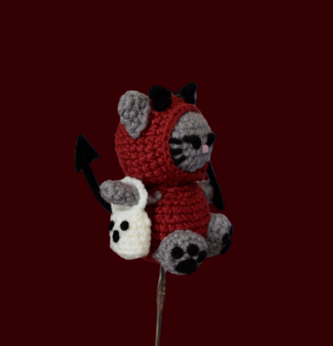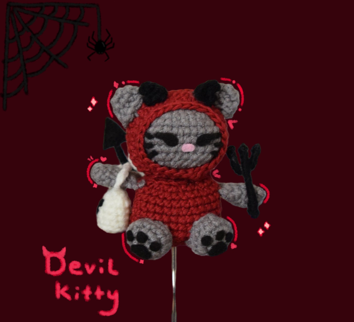 Devil kitty comes with a pitchfork and a ghost candy bag