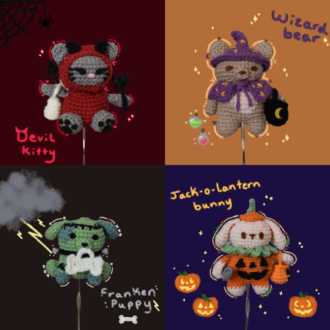Jackolantern bunny with a pumpkin bag and a mini knife