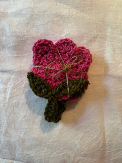 This is a pattern for a tulip coaster that I have designed and I have found that it sells very well at markets and makes a lovely gift! This pattern uses US crochet terms and is intermediate level.