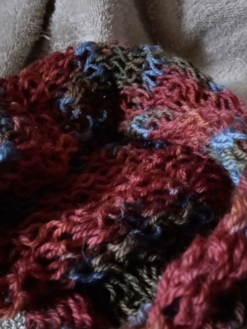 Knitting this on the knitting machine worked better than I thought. I just cranked slow so if any drops or tucks, I could fix them as I went along. In all actually, it behaved nicely (I held a rather tight tension on yarn even with tension bar).