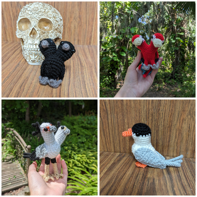 This bundle includes Twofinger the Two-Headed Crow, Twing the Two-Headed Parrot, Flask the Two-Headed Arctic Tern, and Twinkletoes the Two-Headed Secretary Bird! Each bird is designed with two heads but you can easily make them as regular birds.