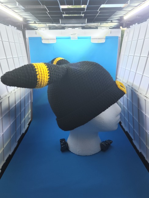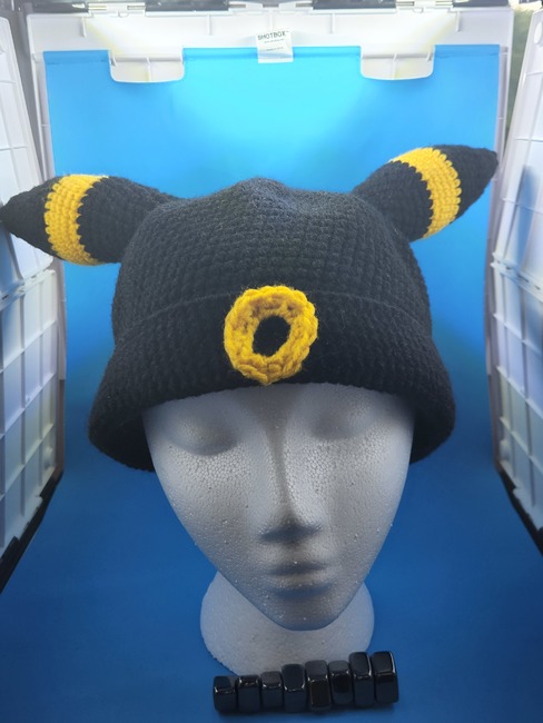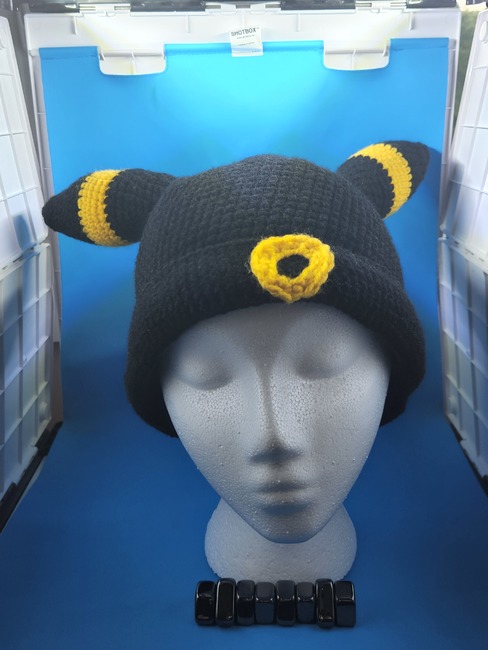 As a nocturnal Pokémon, Umbreon's large eyes can distinguish prey even during the darkest of nights. When its skin is able to absorb moonlight, the circles on its body faintly glow, and a strange power is awakened