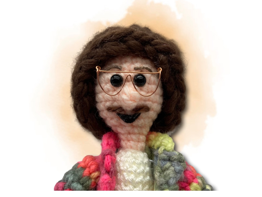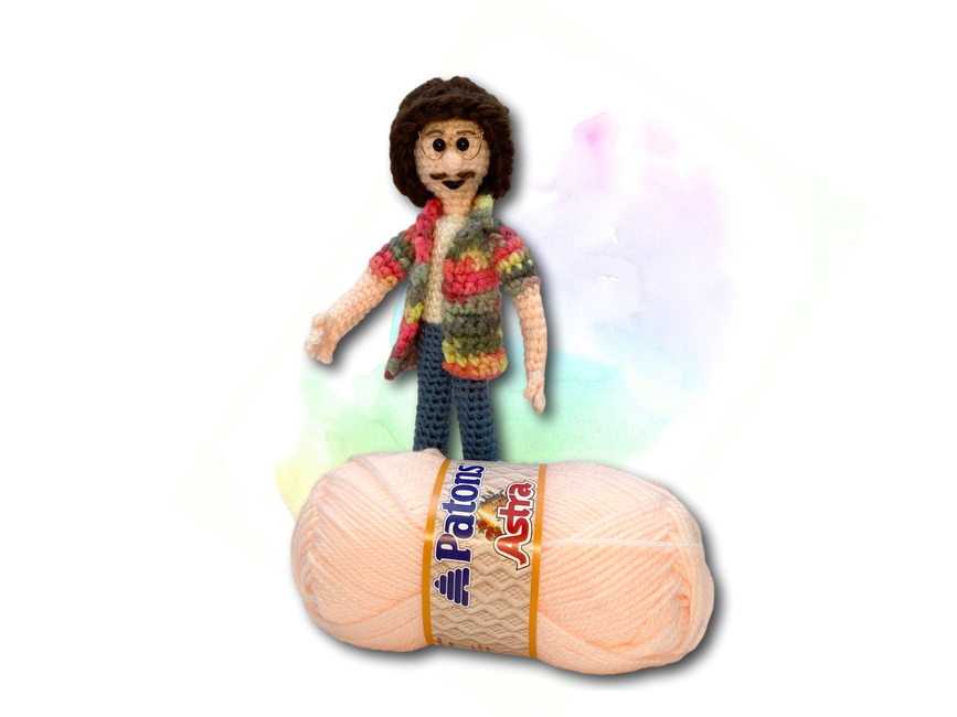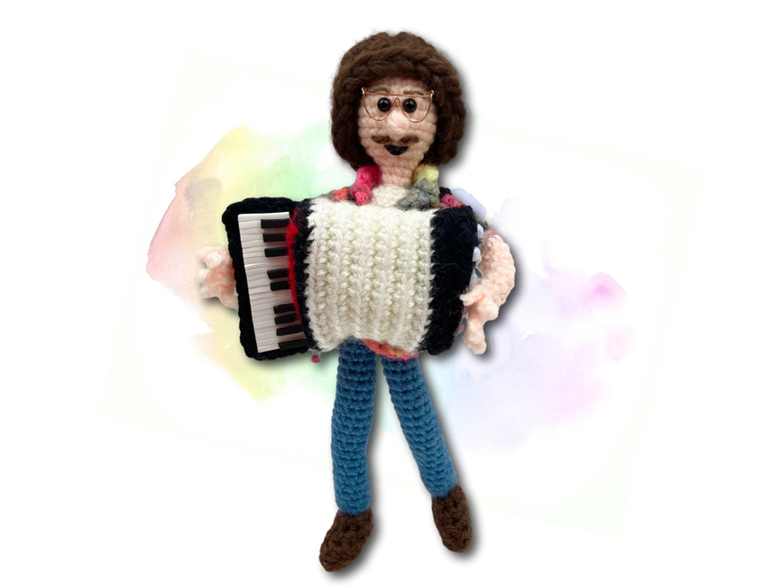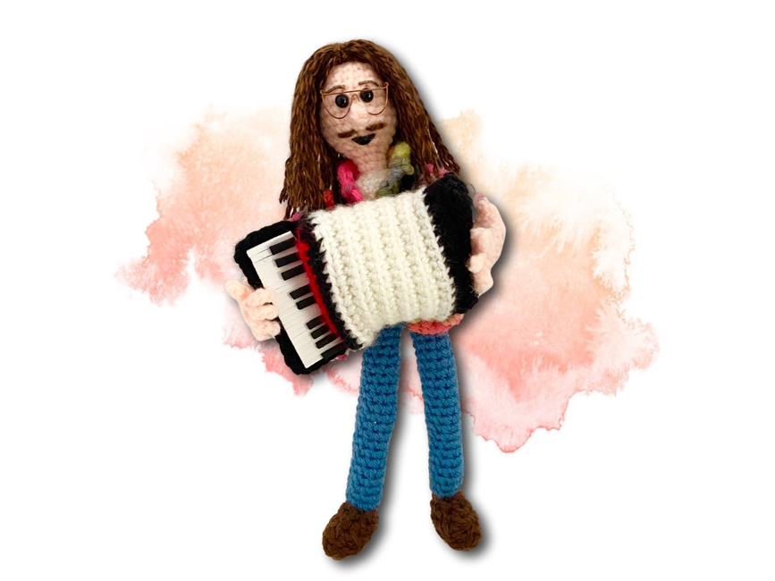 Crafted with the whimsy and charm of a good polka, this parody maestro features wired limbs and is stitched up using the lively notes of worsted weight yarns.
