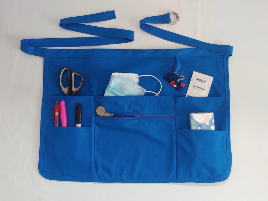 This pattern is for a utility apron with 6 pockets. It features a zippered pocket at the centre front and 5 other open pockets. The belt is long enough to accommodate up to 50" waist, and closes with D-rings for ease and secure fit. There is also a key loop, to attach keys or a carabiner. It is suitable for light to medium weight woven (not stretchy) fabric.
