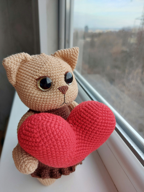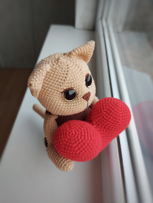 Valentines is a soulful and charming crochet cat designed to capture hearts. With her large, expressive eyes and a beautifully shaped plush heart, she is the perfect messenger for your warmest feelings. This pattern is ideal for creating a meaningful gift for a loved one or a cozy companion for your own home.