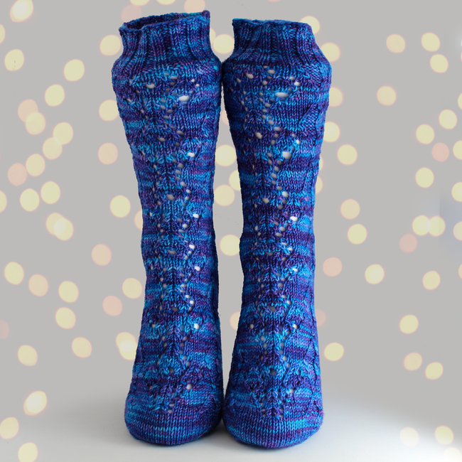 The pattern is written for the magic loop method for knitting socks; however, the design could be worked on double-pointed needles or mini-circulars instead should you prefer.