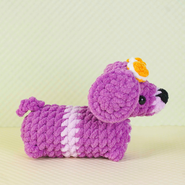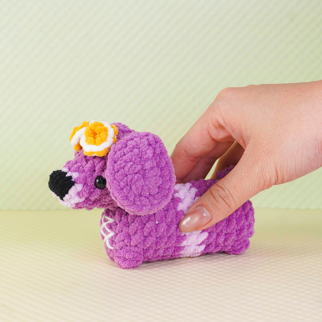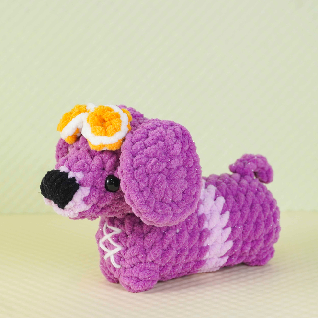 The Violet Bloom Dachshund Crochet Pattern pattern makes a Amigurumi. It is a Intermediate Crochet pattern.