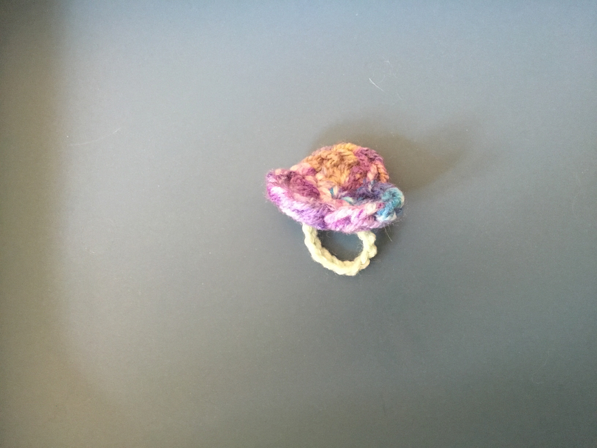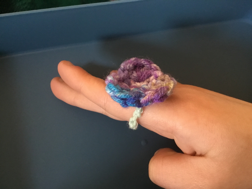 To make Violet Ring you will need: Scraps of yarn, Small amount. Tools required: Whichever to match gauge, Yarn needle for weaving in ends, Scissors.