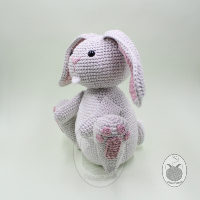 Finished size is approx. 19 cm with ears folded. If you share some photos of your own Violet on social media, don't forget to tag me! @mariecatmade or #mariecatmadepatterns
