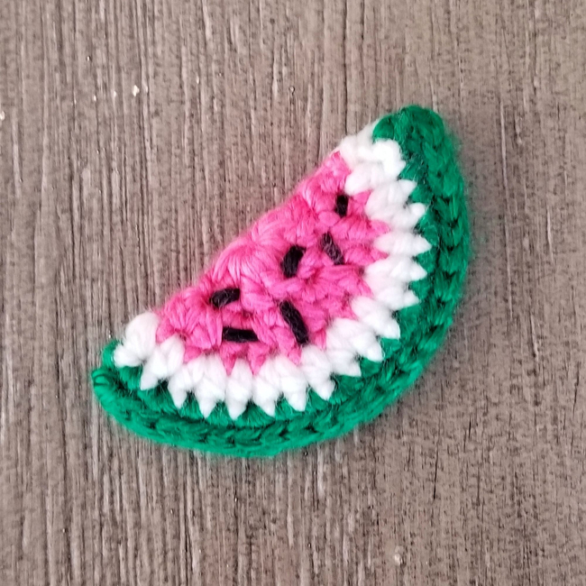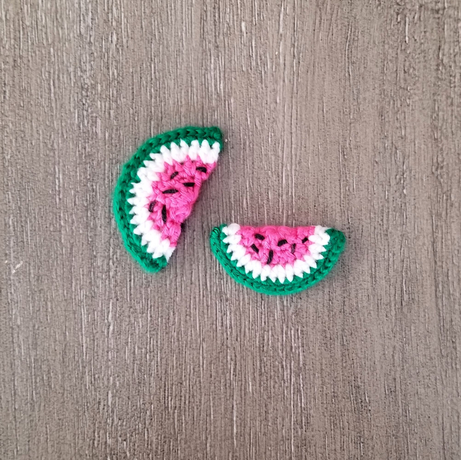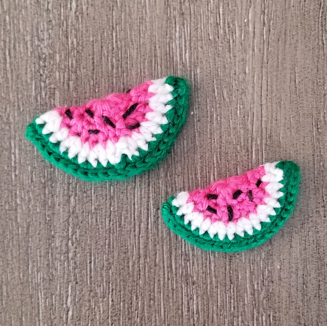 These watermelon appliques are great for scrapbooking, embellishing clothing or bags or whatever your crafty hands want to do with them. They are a great use for scrap yarn.