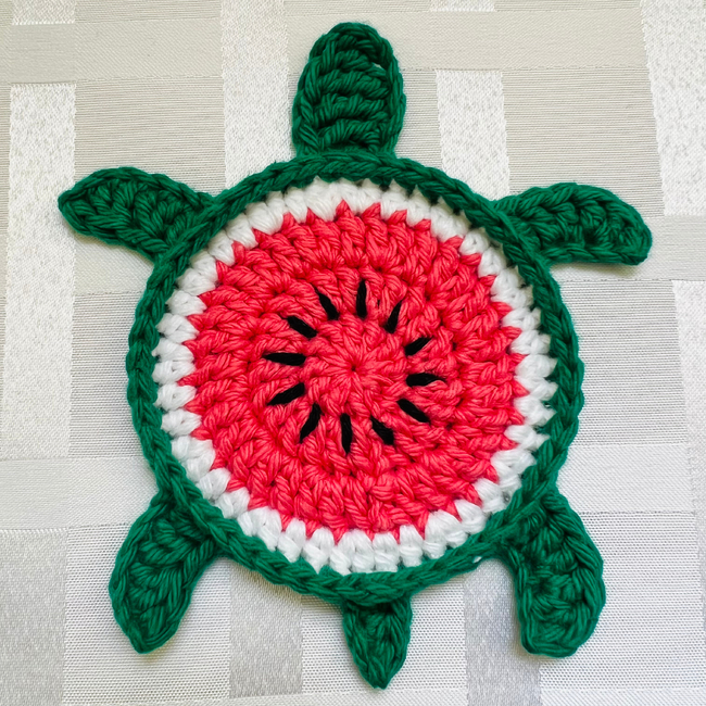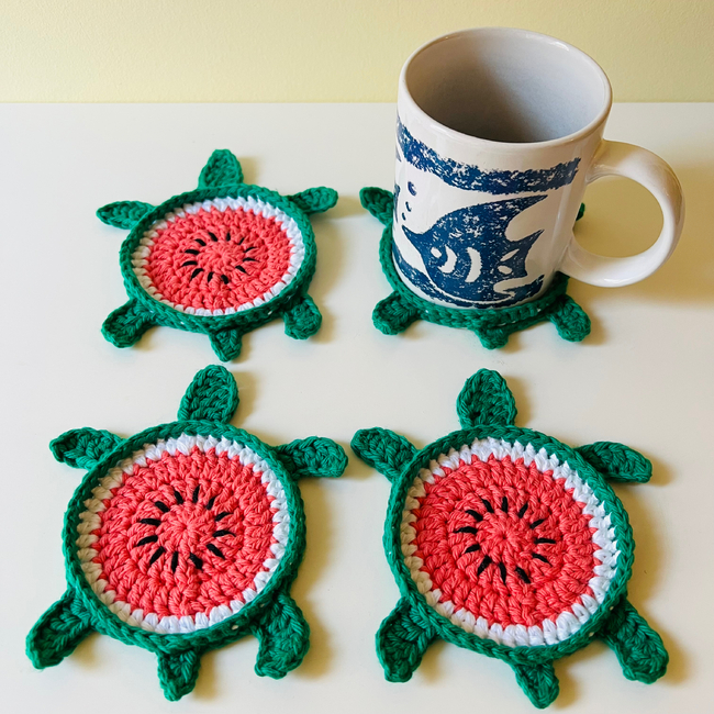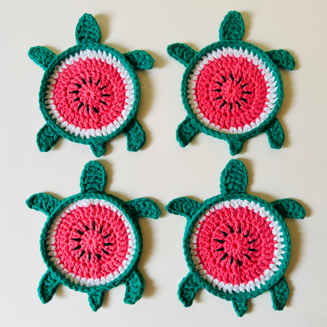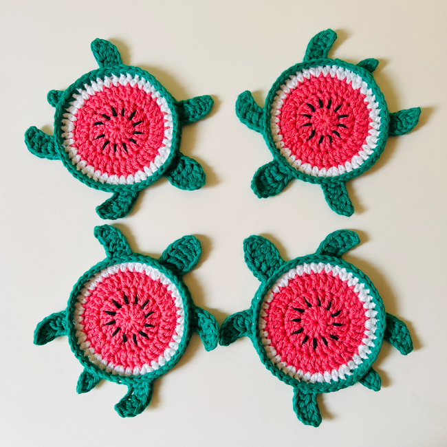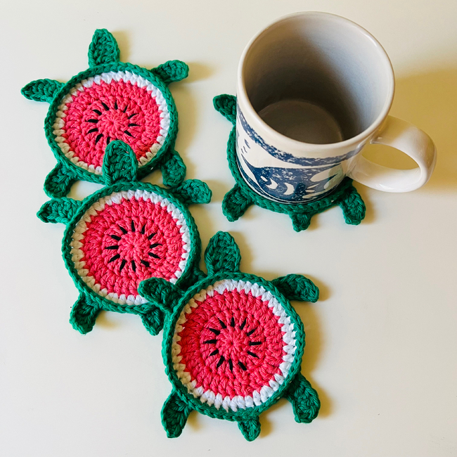 You may have seen watermelon turtle plushies, but how about watermelon turtle coasters? Hop onboard the fruit turtle trend by crocheting these cute turtle coasters that don't require safety eyes or stuffing! May I also add that this is a no-sew pattern? It is suitable for advanced beginners since it mostly uses basic crochet stitches. These coasters will make trendy gifts for any turtle fan!