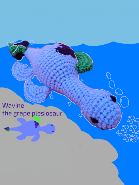 TriassicCreations designed the Wavine the Grape plesiosaur pattern. Find more of their patterns on their Ribblr shop page.
