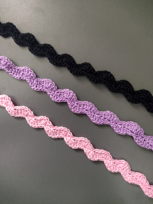 A cute simple wavy choker. It's beginner friendly and worked in rows. Base for the choker is a long straight chain so it stays in its shape when you tie it.