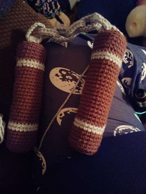 This is a pattern bundle of my first four weapon patterns: the morningstar mace, the nunchuks, the ninja stars, and the rock sling. They're all fairly easy to make, though there is a decent bit of sewing for the mace.