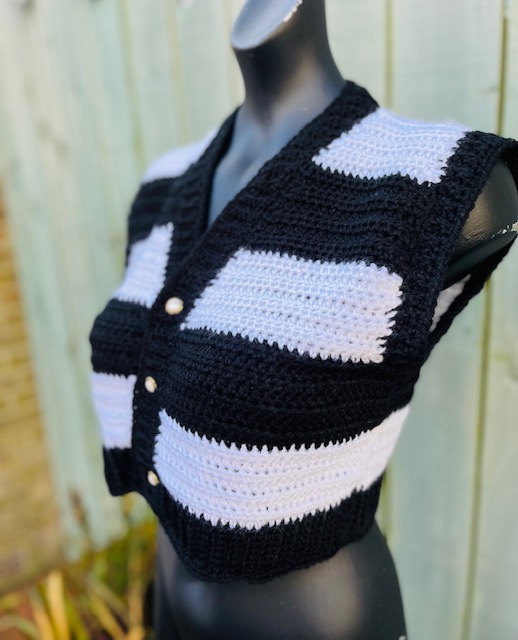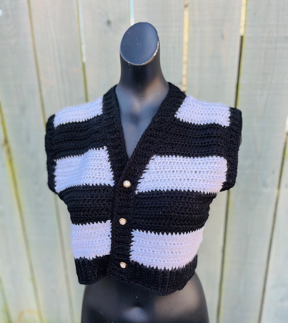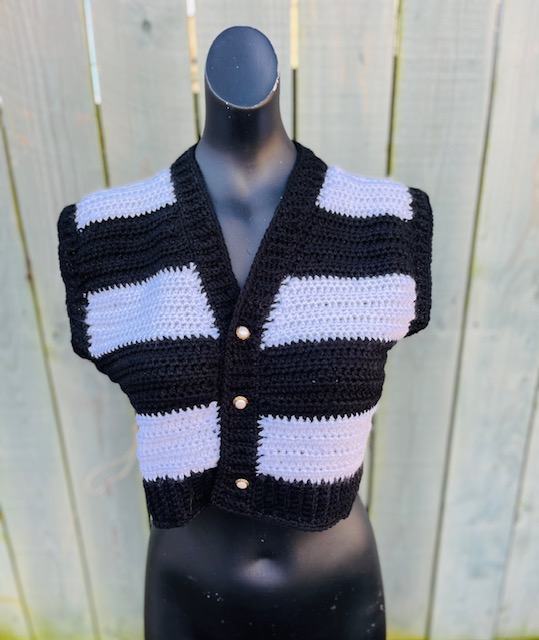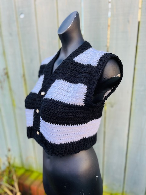 This is the pattern only for this Wednesday Addams inspired cropped crochet waistcoat