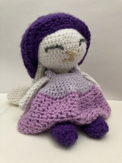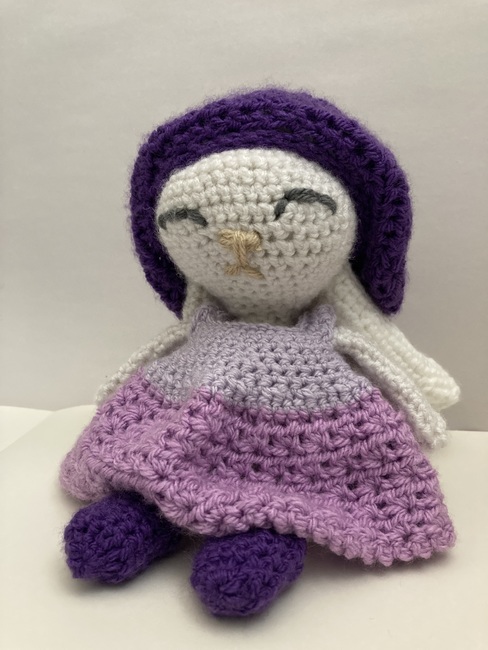 The White Bunny in Purple Dress pattern makes a Amigurumi. It is a Intermediate Crochet pattern.