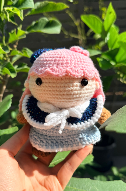 Finished product is around 15cm tall with 3.5mm hook, varies by yarn and hook.