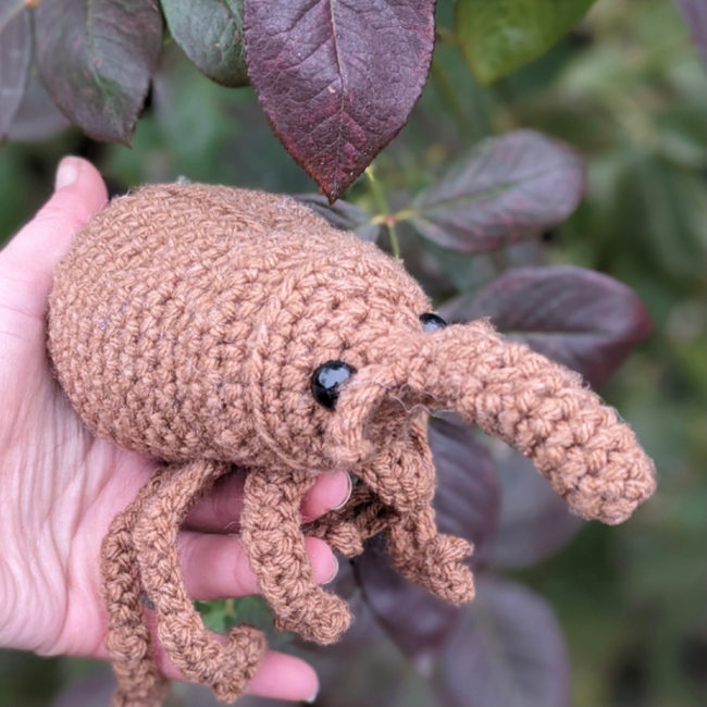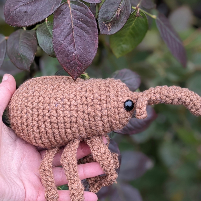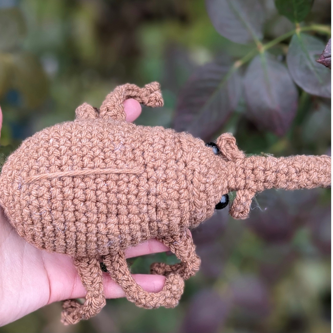 This is my low-sew Willy the Weevil beginner/ intermediate crochet pattern, with cute floppy legs!
