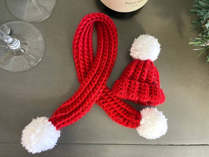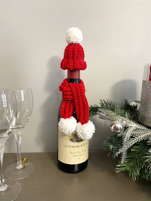Impress your guests with this wine bottle hat and scarf adornment, handmade by you. Makes a great gift for the host and hostess.