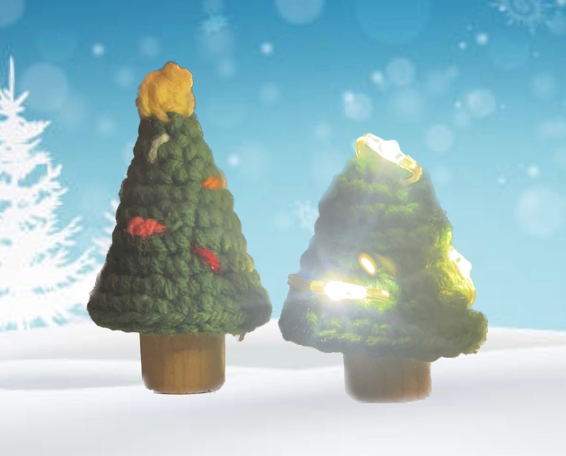 Grandma Rachael’s designed the Wine Cork Christmas Tree - Scrap yarn project! pattern. Find more of their patterns on their Ribblr shop page.