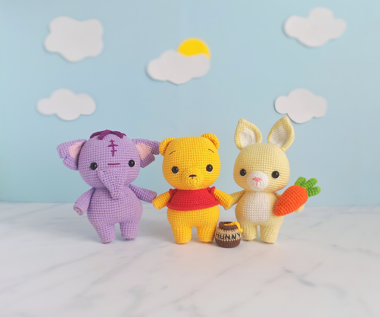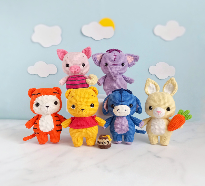 This crochet amigurumi pattern bundle will be your perfect guide to making the cutest amigurumis of the Winnie the pooh franchise.