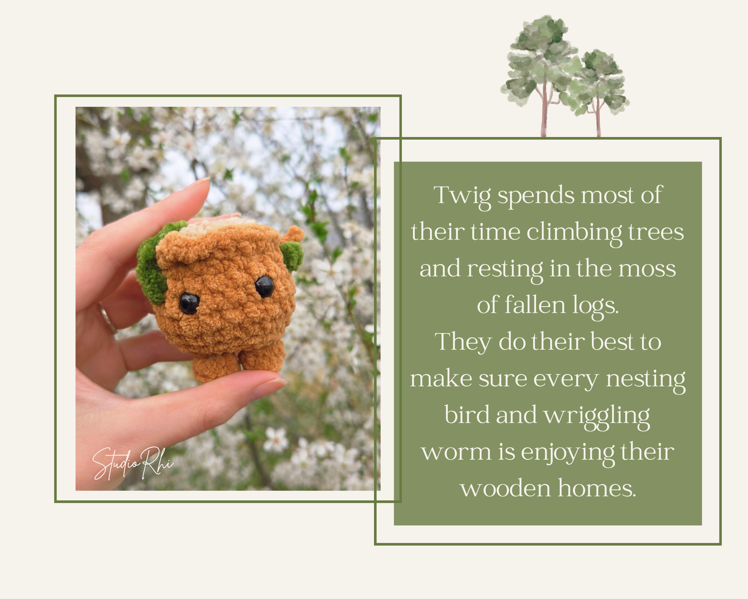 Twig spends most of their time climbing trees and resting in the moss of fallen logs.