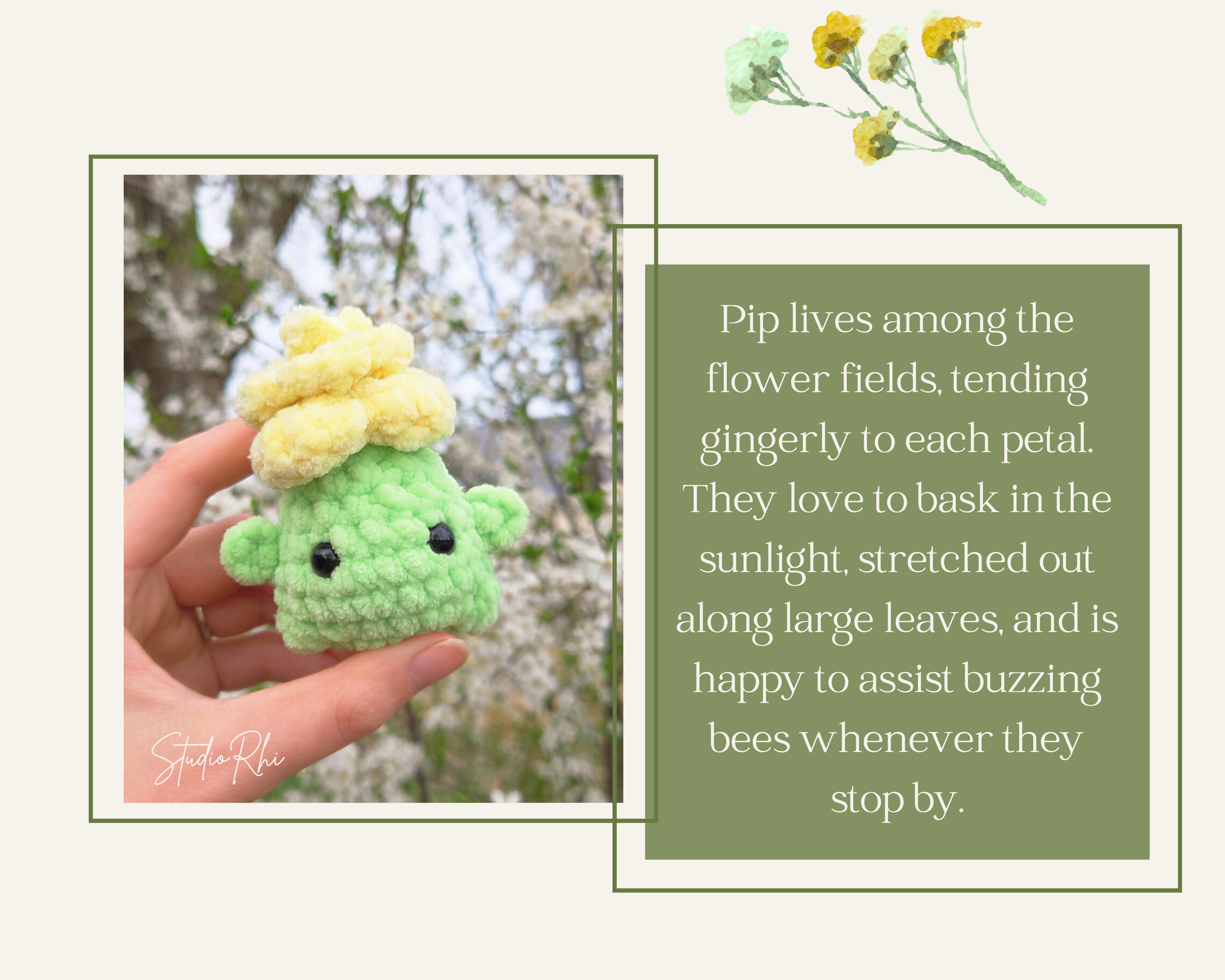 Pip lives among the flower fields, tending gingerly to each petal.