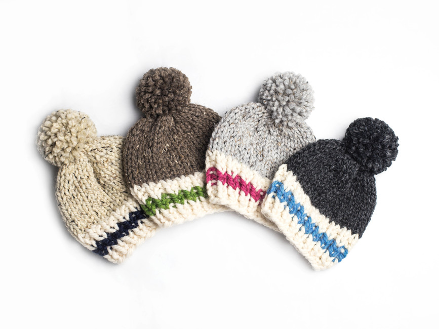 Our work sock stripe winter pompom hat knitting pattern is perfect for making handmade gifts for your loved ones, young and old.
