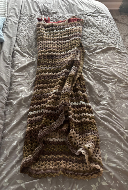 Wrap Beach Cover-Up is a Beginner Crochet pattern designed by Cookiesrdun for making a Clothing. This crochet cover-up is a breezy, beach-ready wrap dress with a relaxed, effortless silhouette. It features an earthy pattern in warm tones of tan, caramel, and cream, giving it a natural, beachy look. The open crochet stitch creates a semi-sheer...