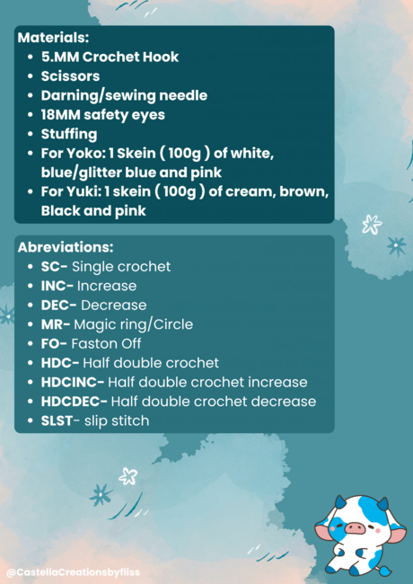 This pattern is for personal use only. You may sell finished items made from this pattern, but please credit the designer: @castellacreationsbyfliss. Do not copy, redistribute, or resell this pattern in any form.