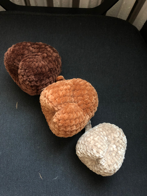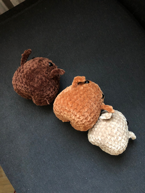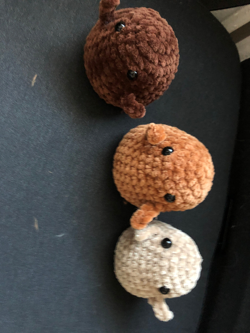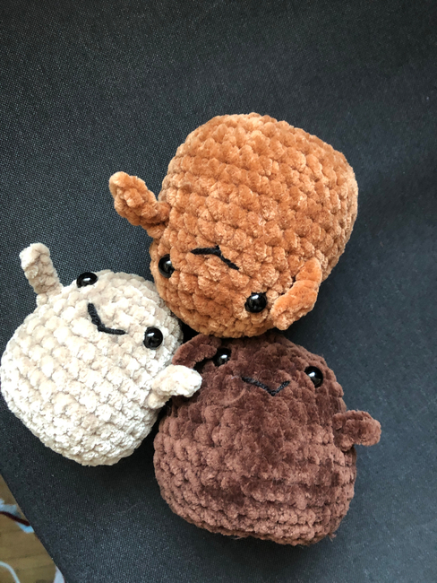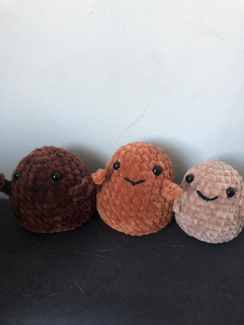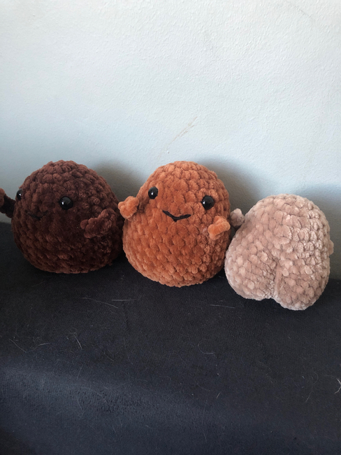 Hello! This is my pattern for a mini cheeky potato! The plushie works very well as a keychain. I hope you will enjoy making those adorably cute little guys!