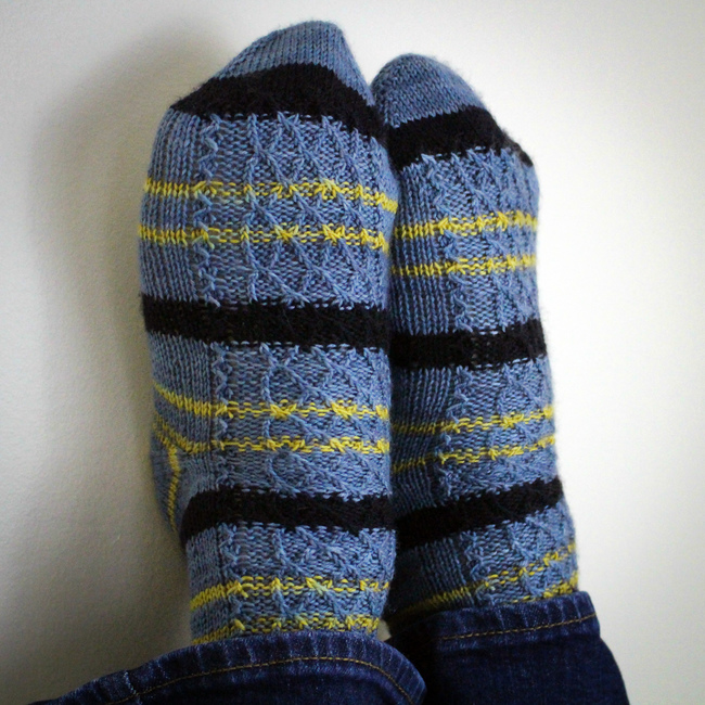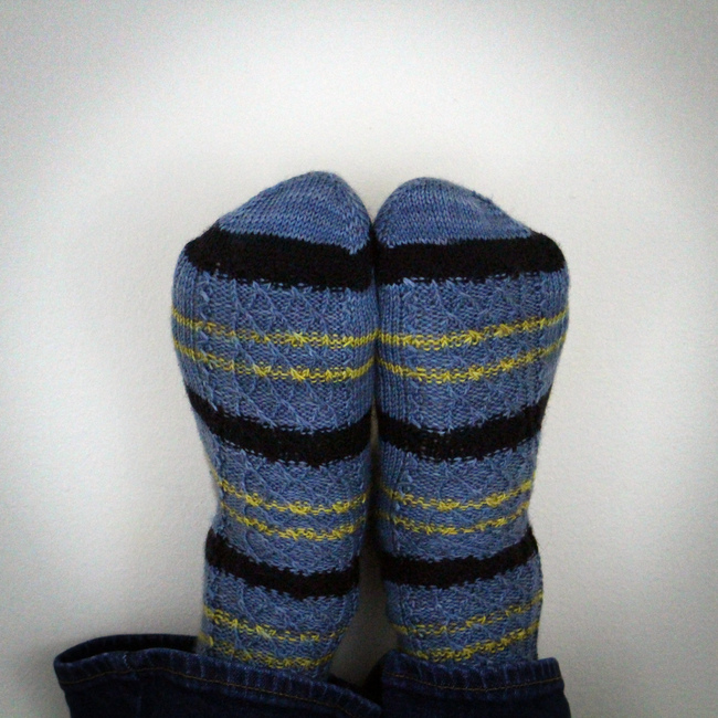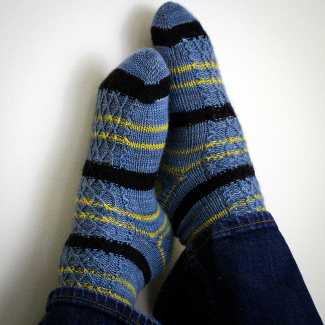 These cabled socks were a gift for my Trekkie uncle, and he adores them.