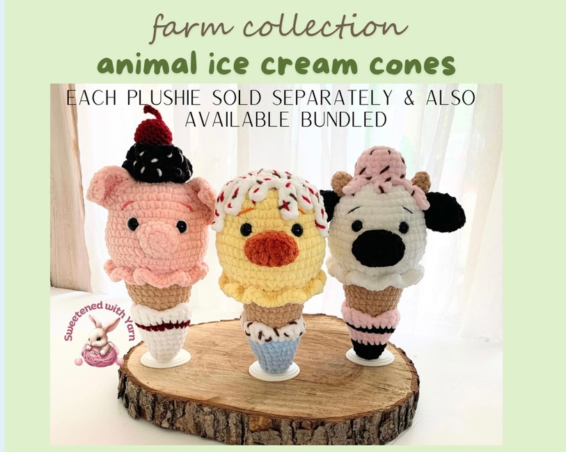 The cones are available in a variety of animals, with more already in the works. Each crochet is a quick, whimsical journey, perfect for market makes or a relaxing project at home.