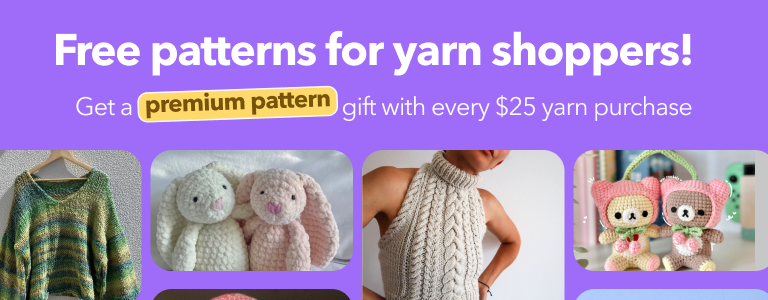 3. Eligibility: To claim a free pattern, you must make a valid purchase of $25 (USD) or more on qualifying yarn. Qualifying yarn includes any yarn sold by JOANN, whether purchased via JOANN.com, Ribblr.com, or at a JOANN store.